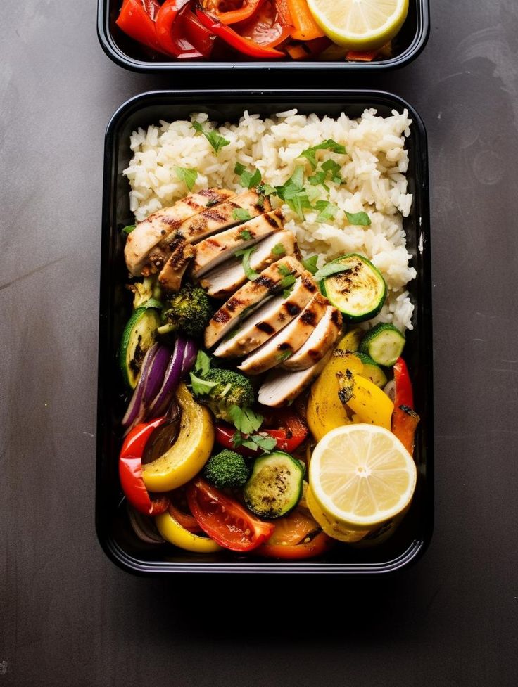 High protein afghani chicken, brown rice with exotic veggies and dressing.