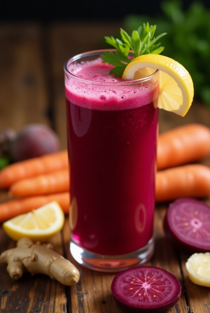 Beetroot juice is packed with nitrates, antioxidants, vitamins, and minerals, offering benefits like lowering blood pressure, boosting athletic stamina by improving oxygen flow, supporting liver health, fighting inflammation, and enhancing brain function through increased blood flow.